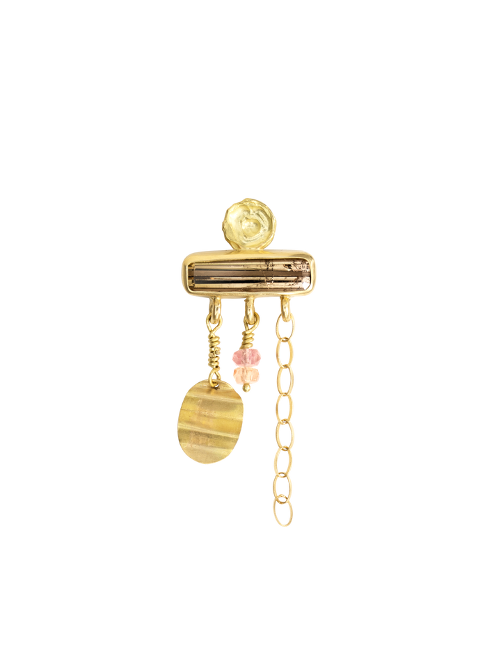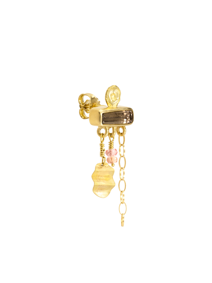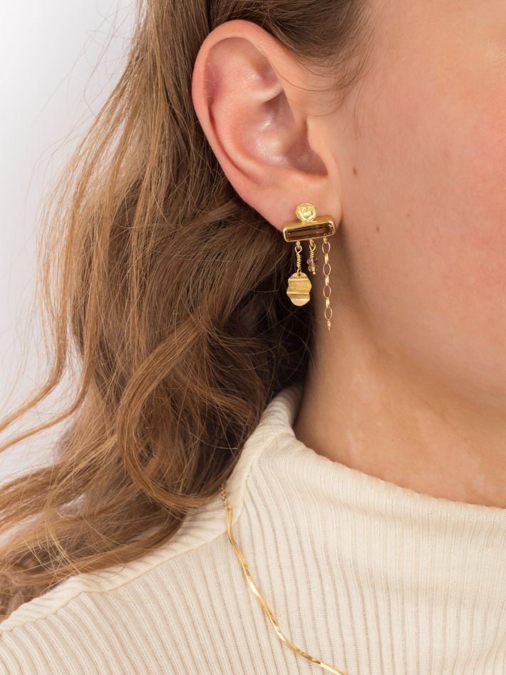Only one piece made18 kt solid yellow gold1 tourmaline & 2 sapphiresSingle earring