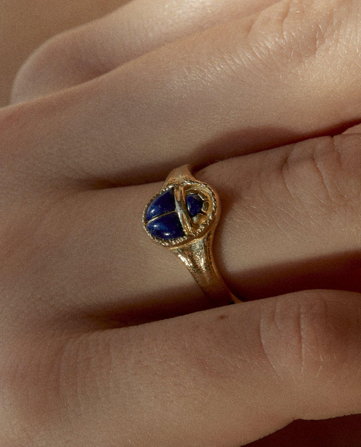 Inlay scarab ring lapis