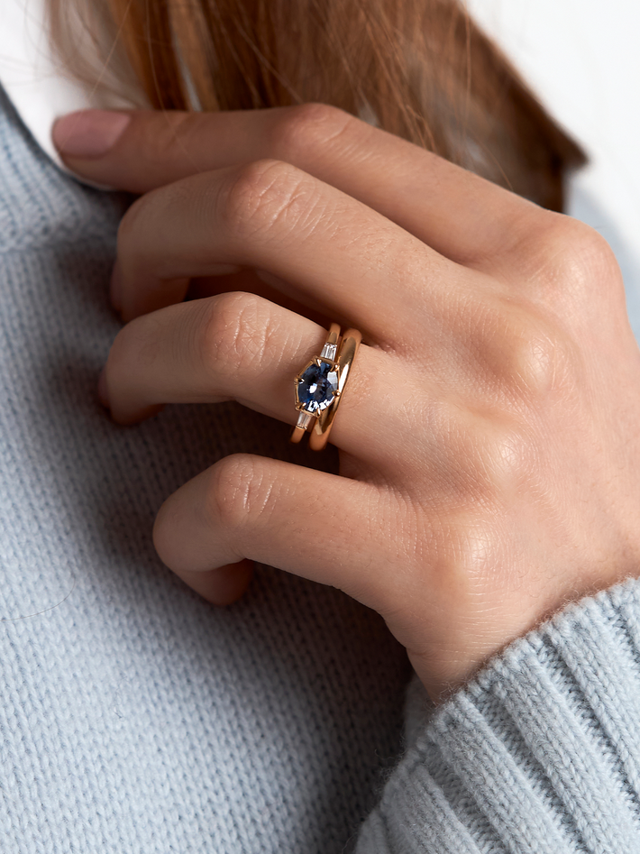 Made of a single, solid precious metal or metal alloy. Highly durable, can always be re-polished to regain its shine after wear.
