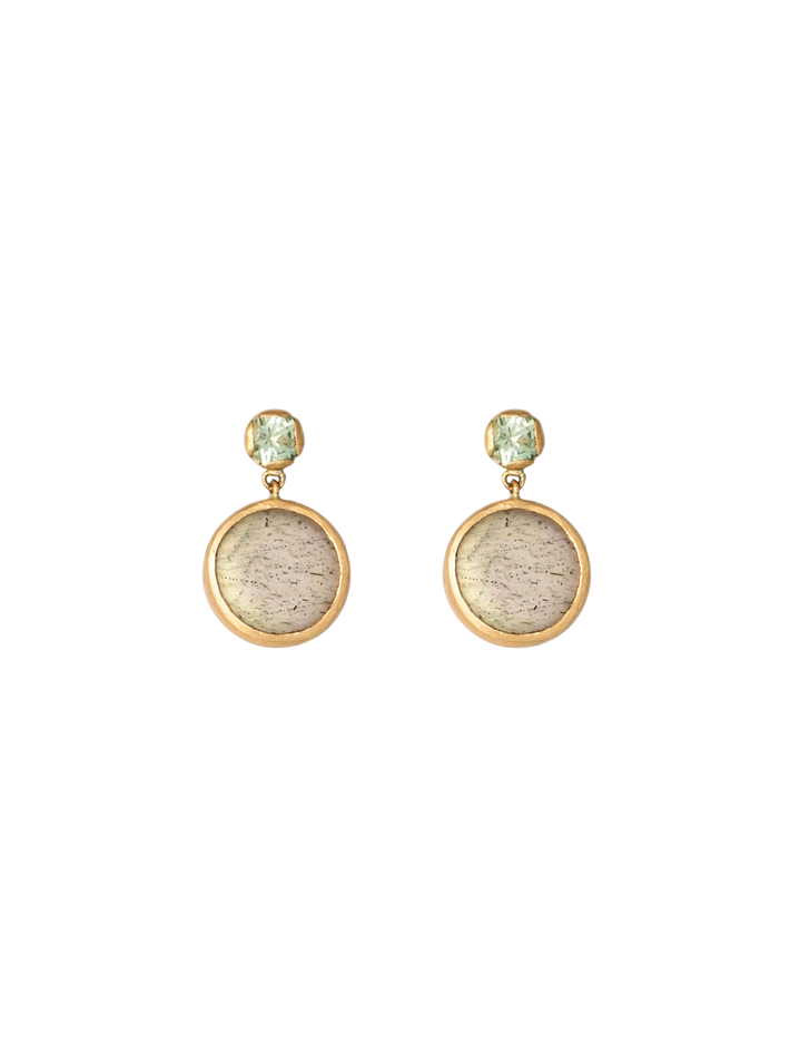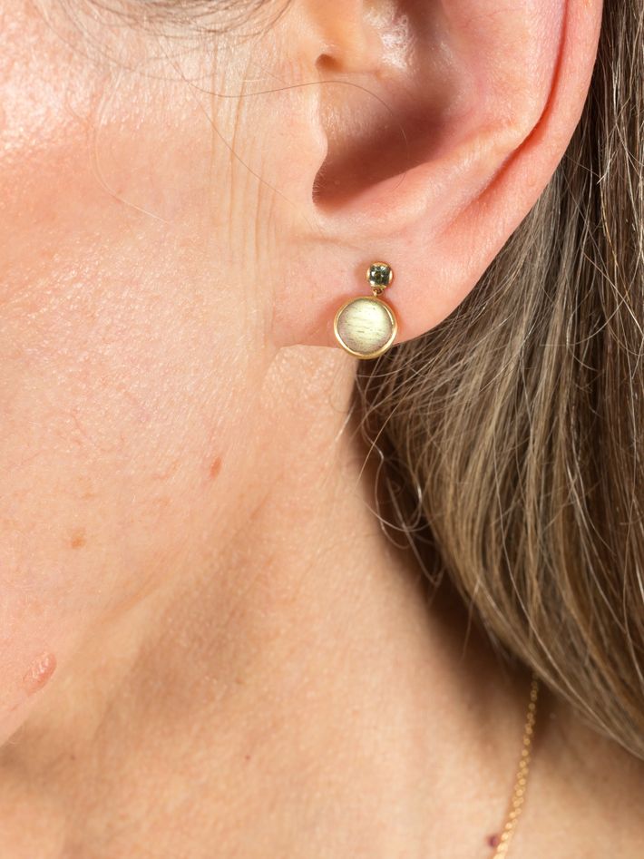 Only one piece made18 kt solid yellow gold & 22 kt solid yellow gold0.24 ct in 2 sapphires & 2 labradoritesPair of earrings