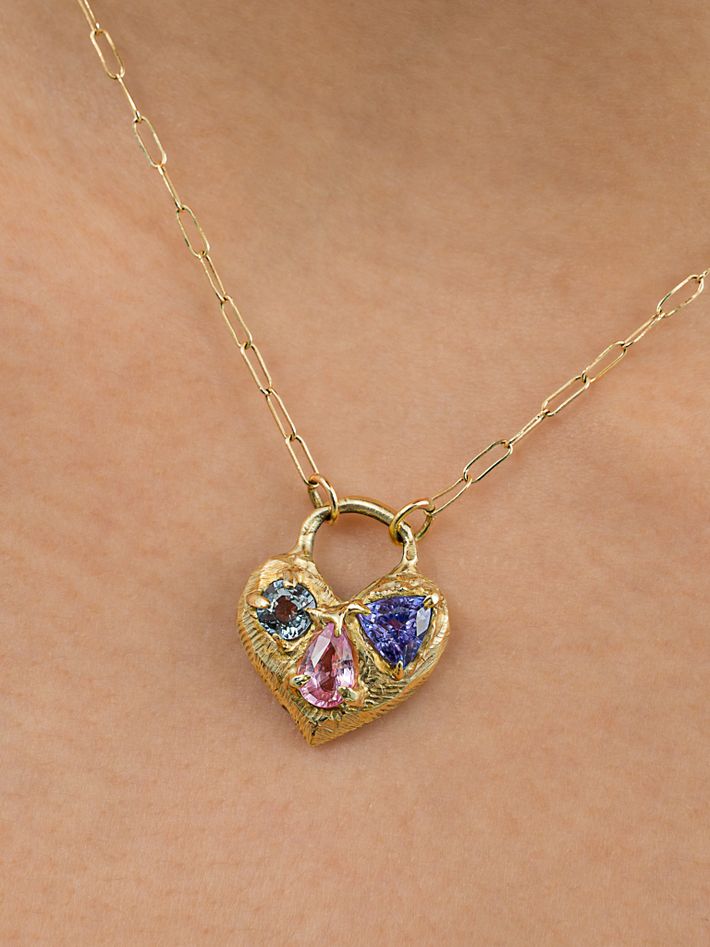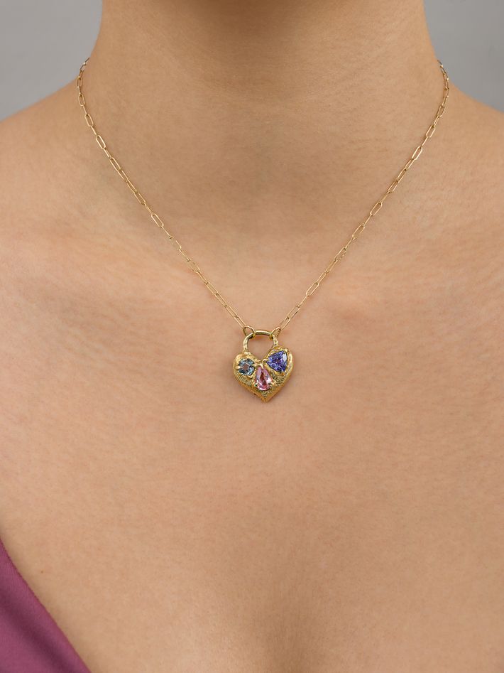 Only one piece made14 kt solid yellow gold1 tanzanite, 1 spinel & 1 spinel