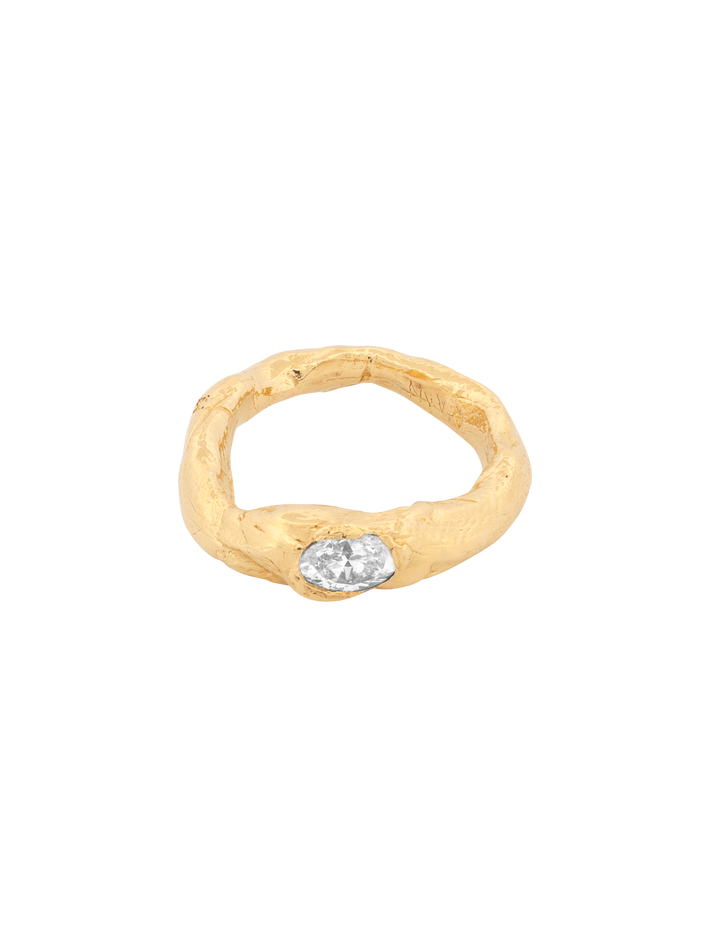 A beautiful band of yellow gold set with a stunning antique white diamond - simplicity at it's best.