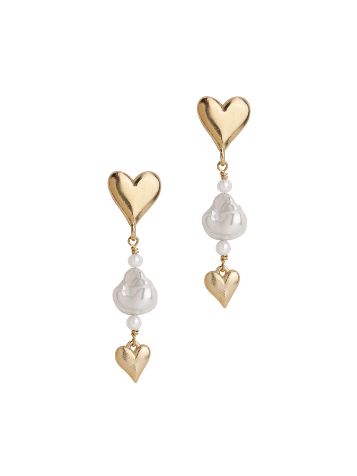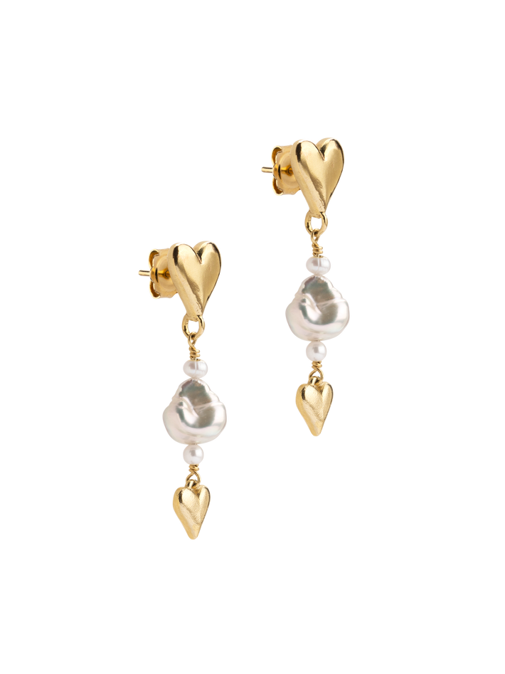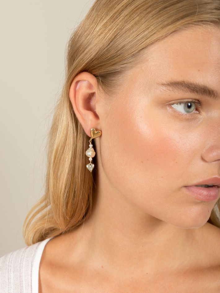 A central larger baroque pearl with a tiny pearl either side in the drop of the earring.