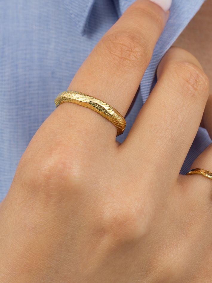 Made of a single, solid precious metal or metal alloy. Highly durable, can always be re-polished to regain its shine after wear.