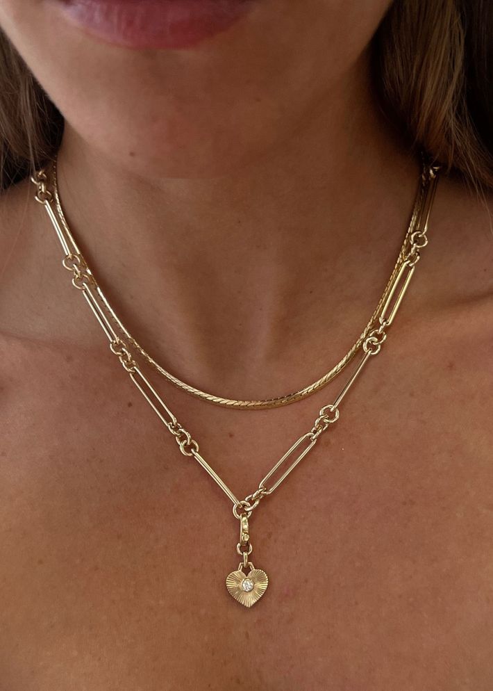 A precious and highly durable metal which comes in different golden hues depending on its purity.