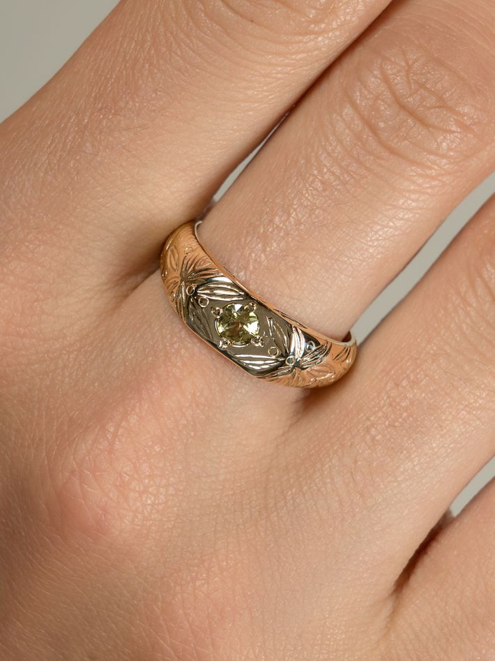 Made of a single, solid precious metal or metal alloy. Highly durable, can always be re-polished to regain its shine after wear.