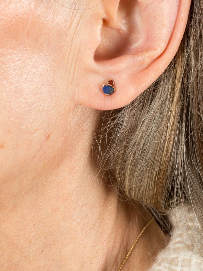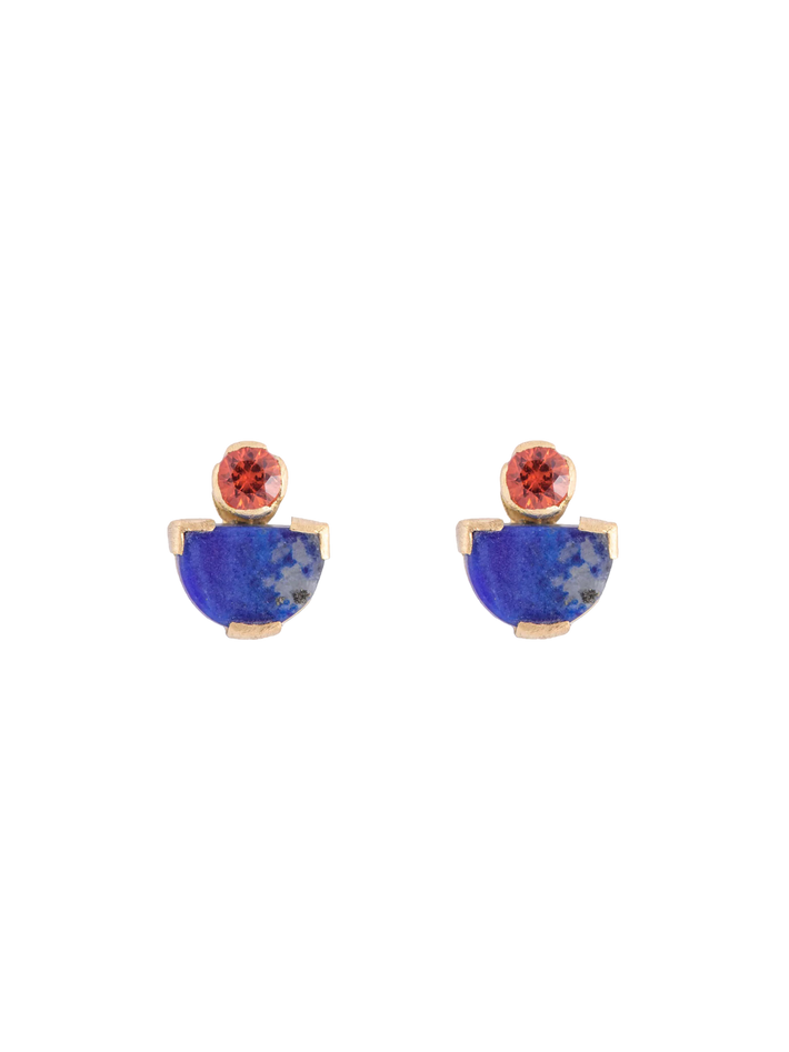 Orange sapphire and lapis mina studs