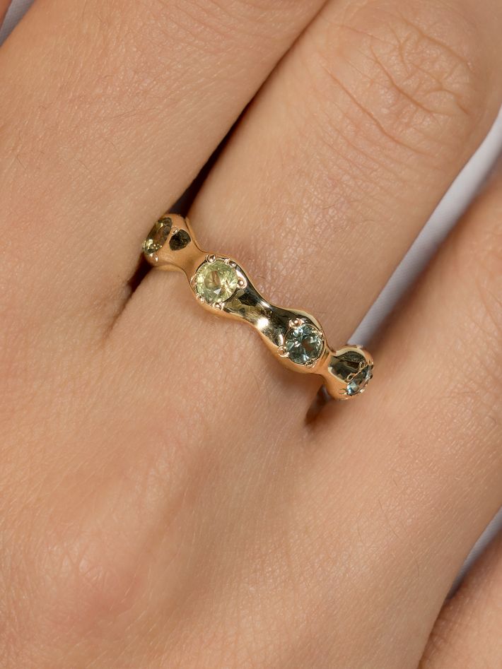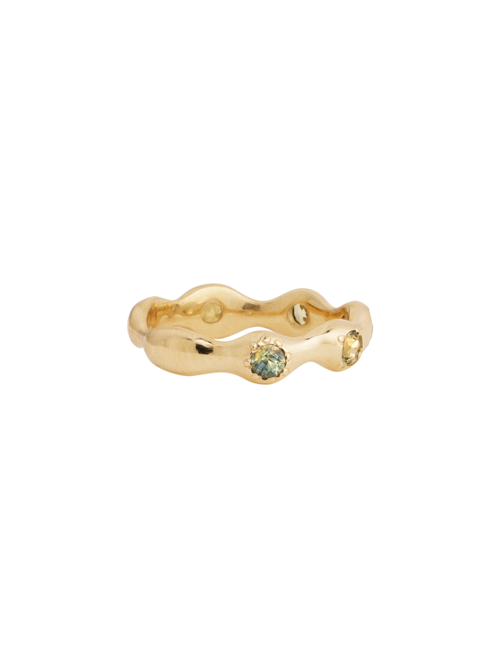 5 natural Australian sapphires carefully selected to compliment each other in colour. Ranging from yellow to green to blue and Rangoon gin size from 3-4mm