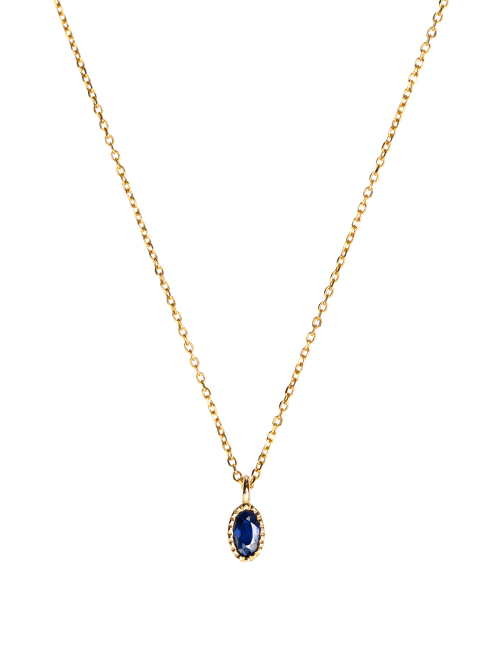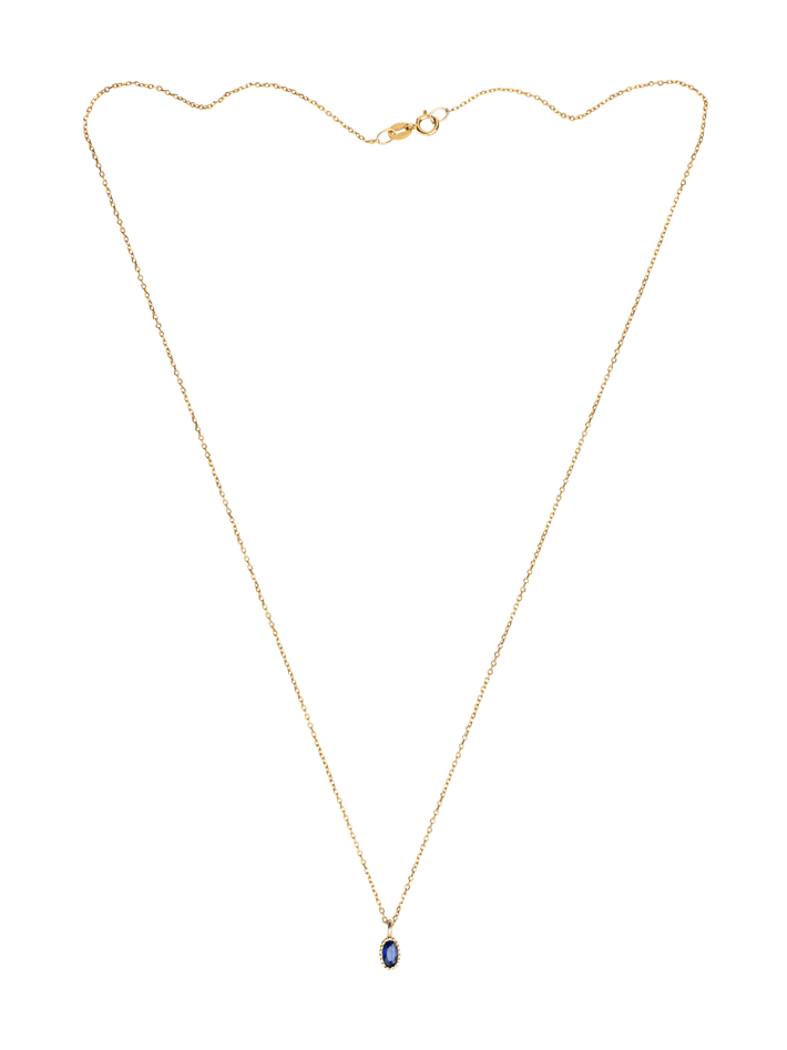 Classic and timeless in its beauty, this wisp necklace features a wonderful deep blue sapphire on a cable chain.