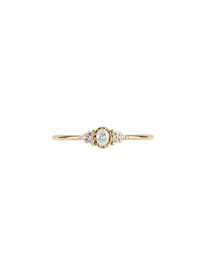 3 x 2mm oval diamond with six 1.2mm round diamonds.