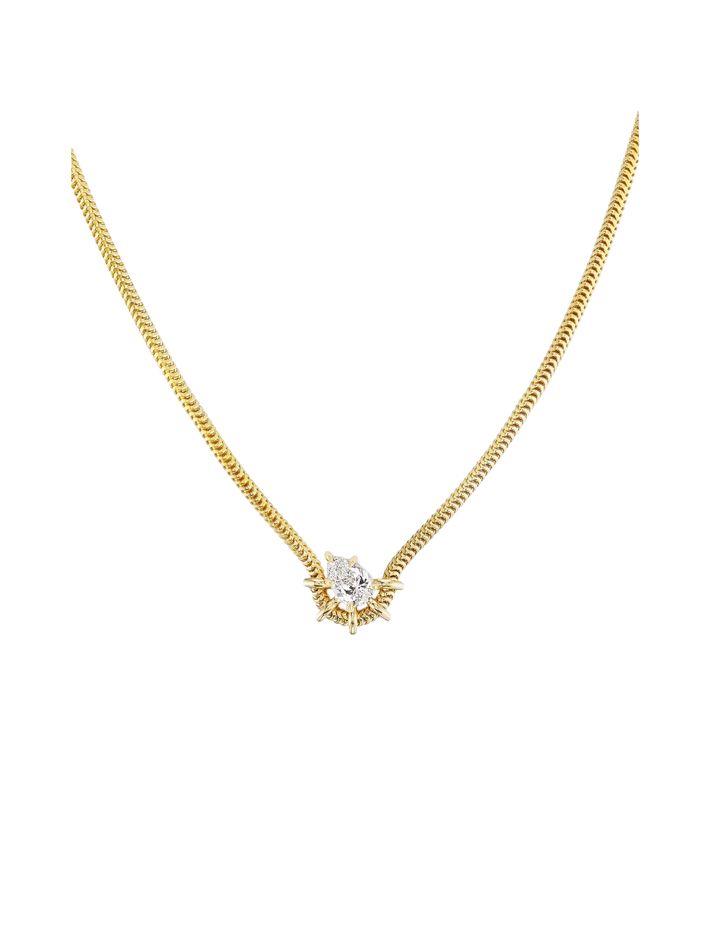 A precious and highly durable metal which comes in different golden hues depending on its purity.