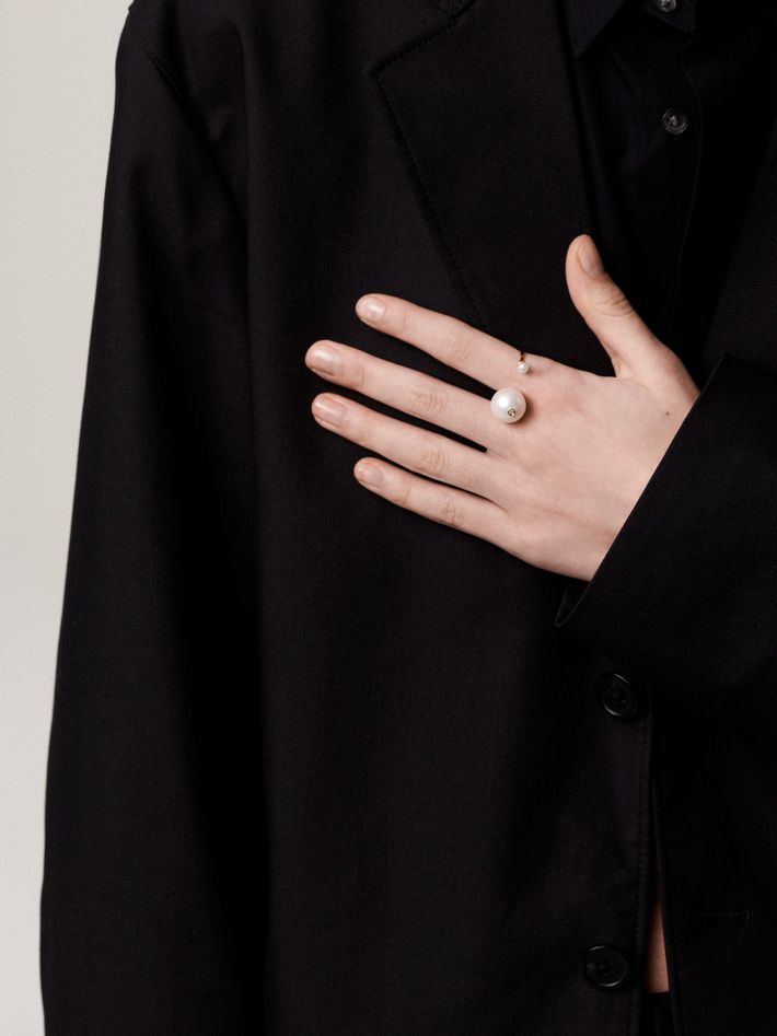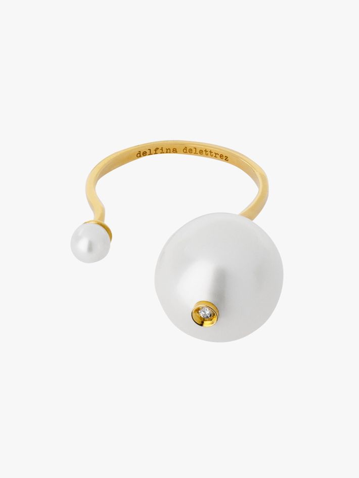 The open gold band features a delicate pearl on each side - a balancing act that comes out as a beautiful statement.