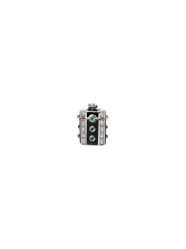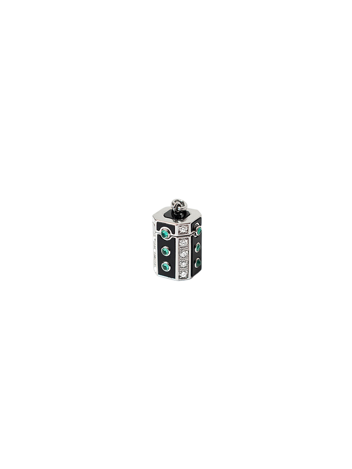 Only one piece madeSterling silver0.46 ct in 20 diamonds & 9 emeralds