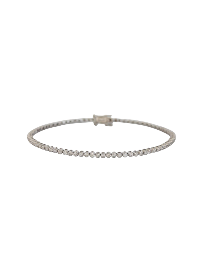 58.3% gold content, plated with rhodium, cool white hues. Relatively hard making it a popular choice for jewellery that lasts a lifetime. 14kt gold is hypoallergenic and generally safe for people with sensitive skin.