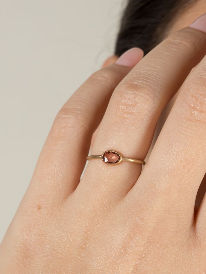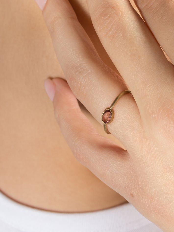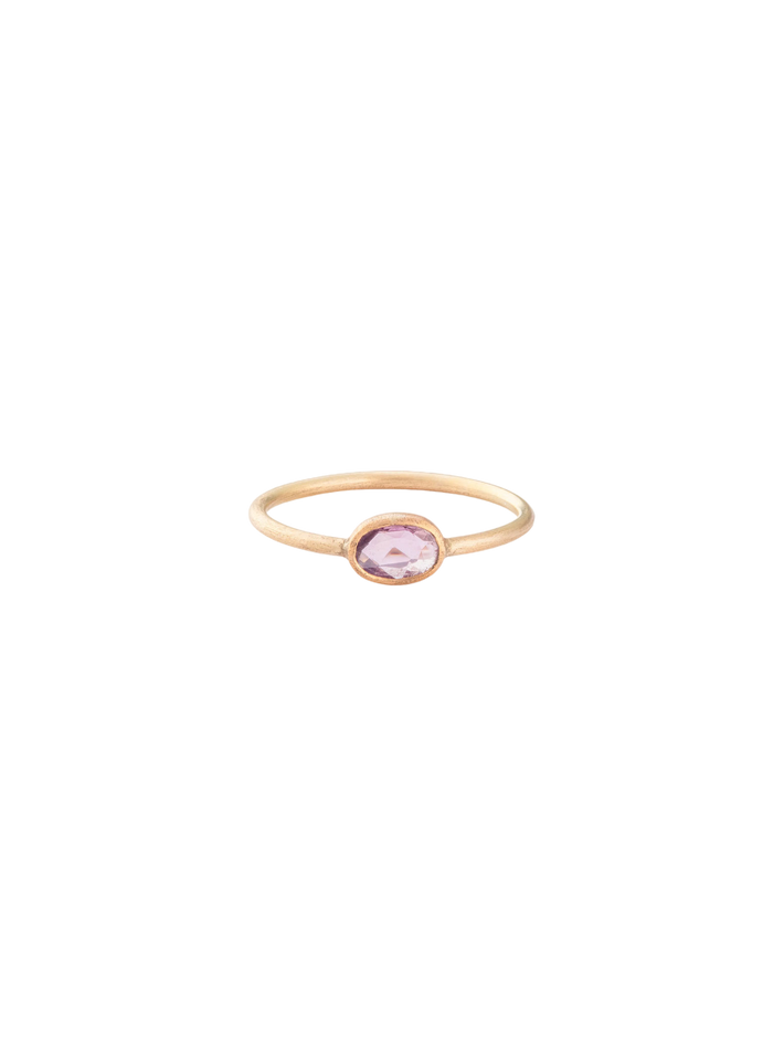 A blush pink, rose-cut, 6mm x 4.5mm oval sapphire