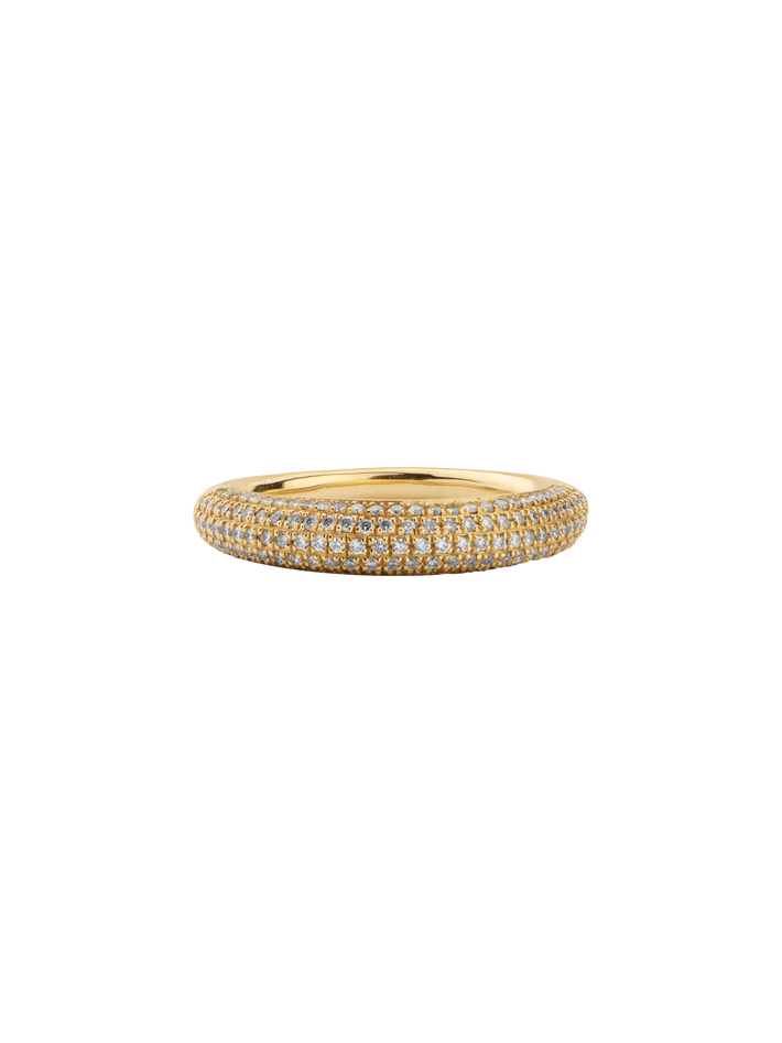 Rising tusk ring with half white pavé diamonds