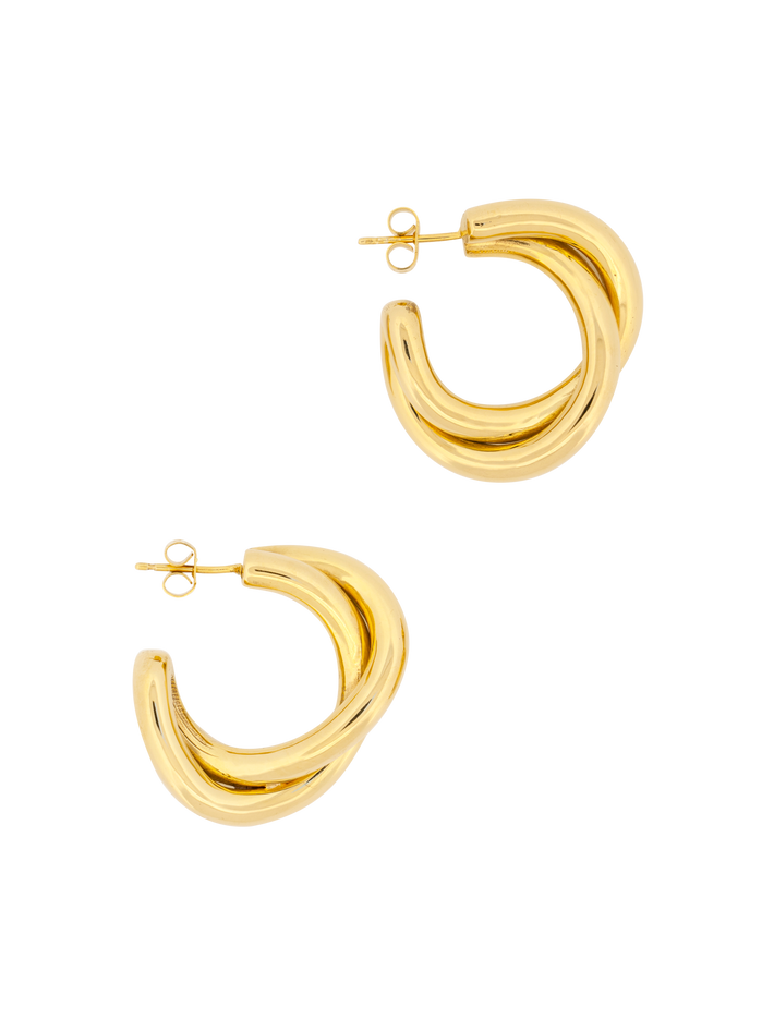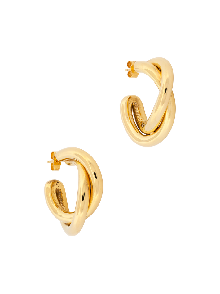 We love the sculptural twist of these hoops. The tubular designs are a Ruddock signature.