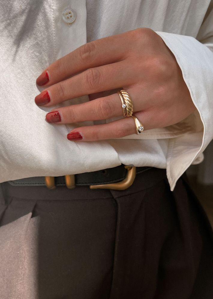 Made of a single, solid precious metal or metal alloy. Highly durable, can always be re-polished to regain its shine after wear.