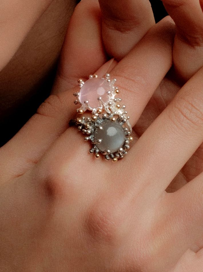 Sea anemone ring in silver and 18k yellow gold with london blue topaz