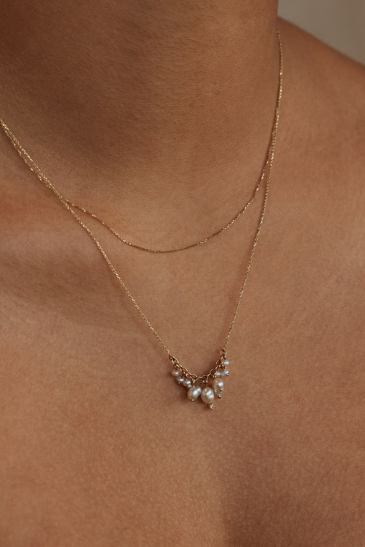 Shadow diamond & pearl necklace