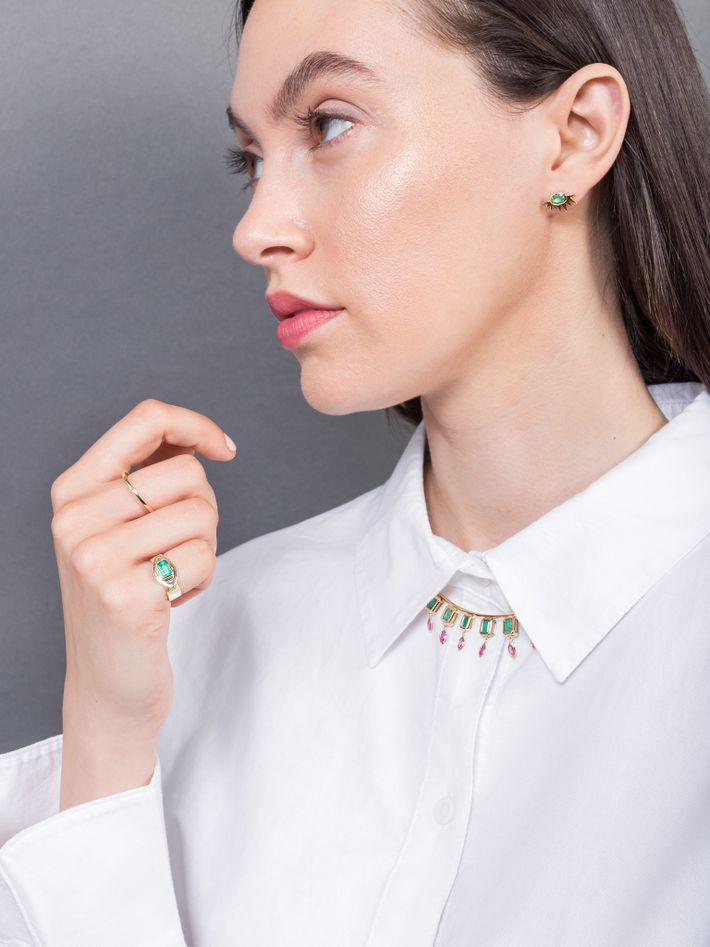 "Christina's rings shine and glisten with every movement, while her necklaces make perfect additions for layering."