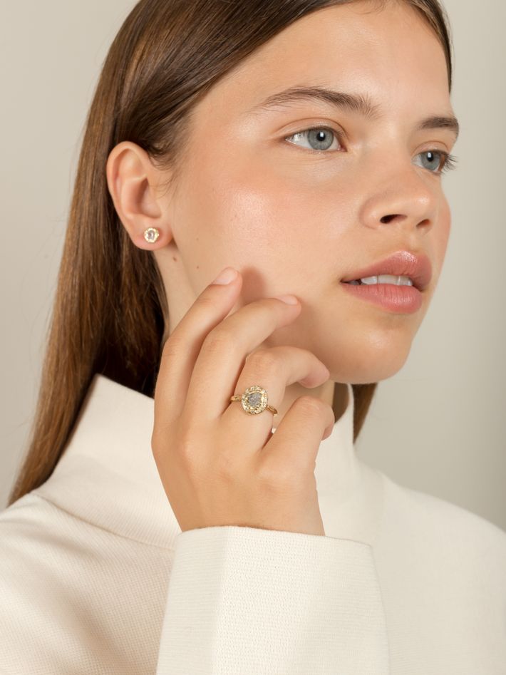 "We love the organic shapes and cuts found throughout Emilie's collection and how she celebrates the imperfections in metals and natural gemstones."