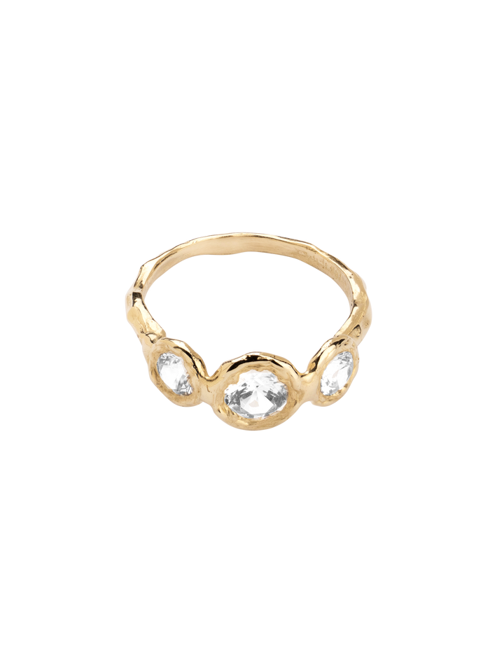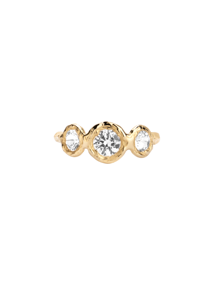 A central 5mm round white sapphire, with 4mm round white sapphires each side.