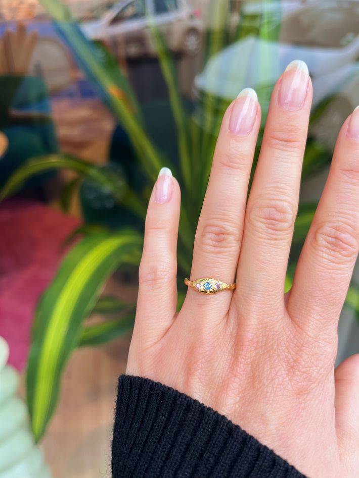 Only one piece made18 kt solid yellow gold3 sapphires