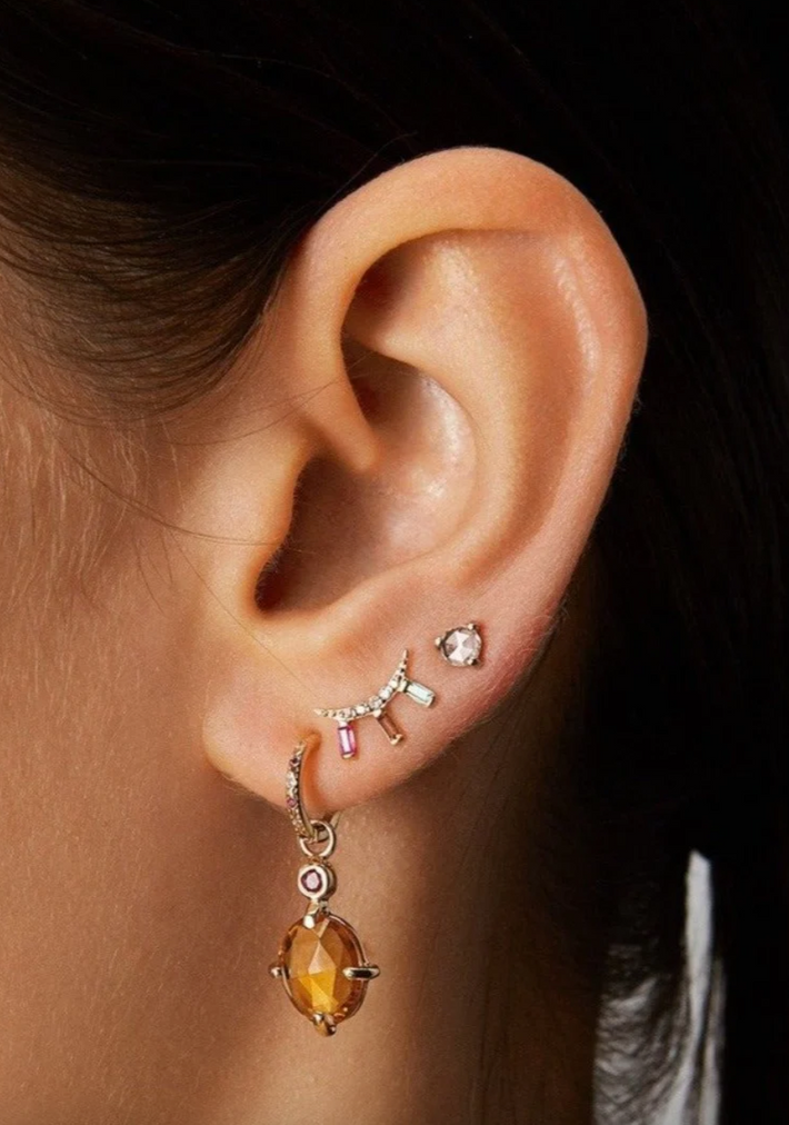 14 kt solid yellow gold1 emerald, 1 ruby, 1 citrine & 5 diamondsSingle earring