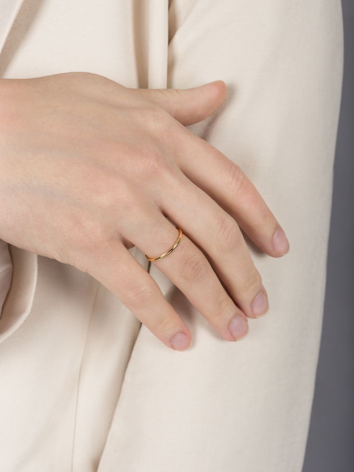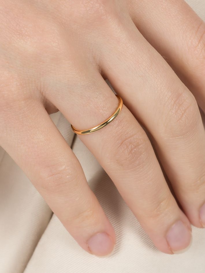 Made of a single, solid precious metal or metal alloy. Highly durable, can always be re-polished to regain its shine after wear.