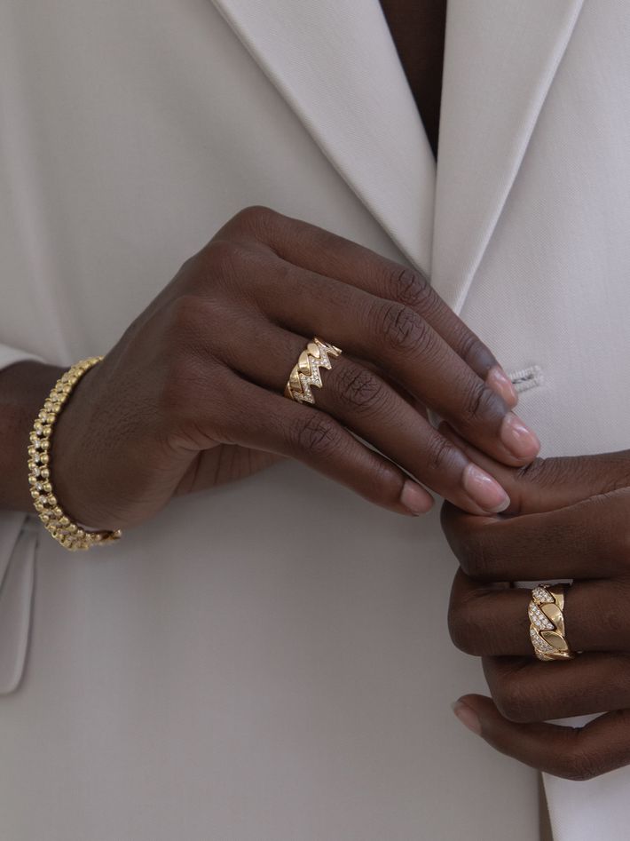 Made of a single, solid precious metal or metal alloy. Highly durable, can always be re-polished to regain its shine after wear.