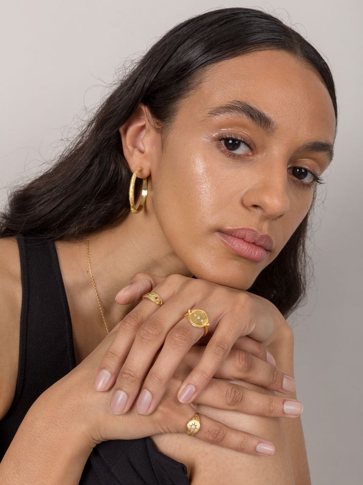 75.0% gold content, a warm buttery yellow hue and considered the most classic gold. An exclusive as well as durable precious metal. 18kt gold is hypoallergenic and generally safe for people with sensitive skin.