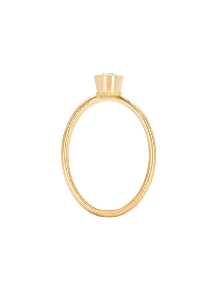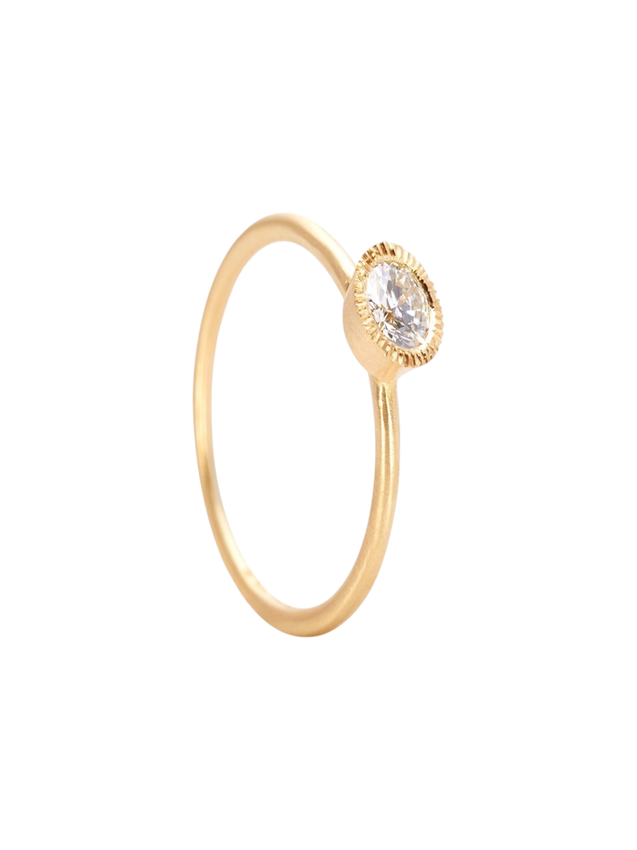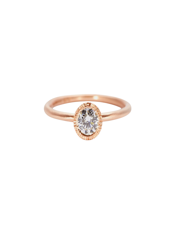 An engagement ring done the Satomi Kawakita way, we love the textured setting around the dazzling diamond.