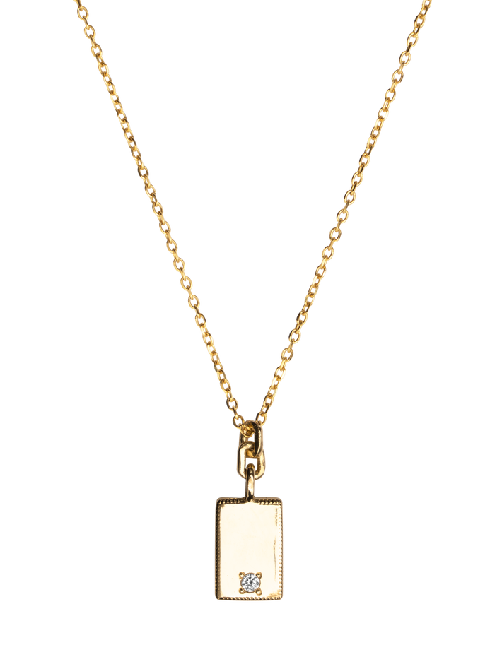 We adore this unique rectangle pendant set with a tiny diamond. A lovely layering piece which can be worn everyday.